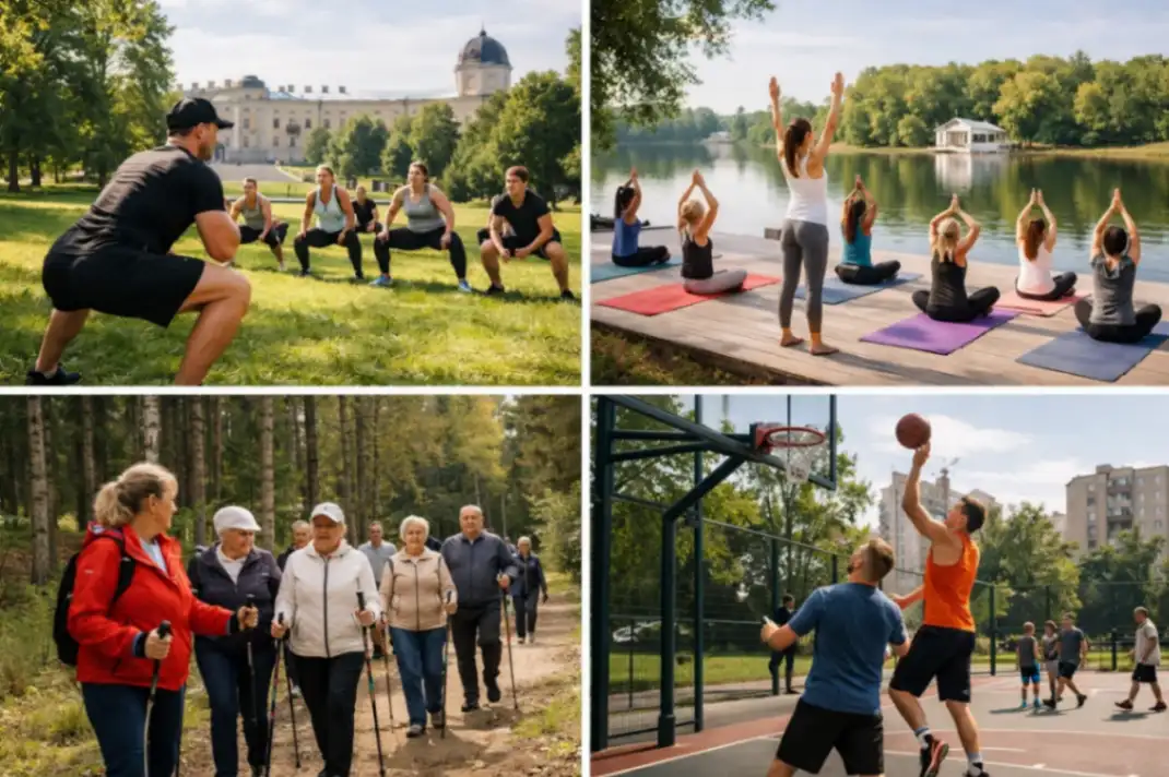 Город также активно развивает спортивные площадки общего пользования. В парках, на стадионах и уличных площадках регулярно проходят групповые занятия: пробежки, тренировки по воркауту, футболу и функциональному тренингу. Такие программы особенно популярны среди молодёжи и жителей, которые хотят поддерживать форму без абонемента в фитнес-клуб.